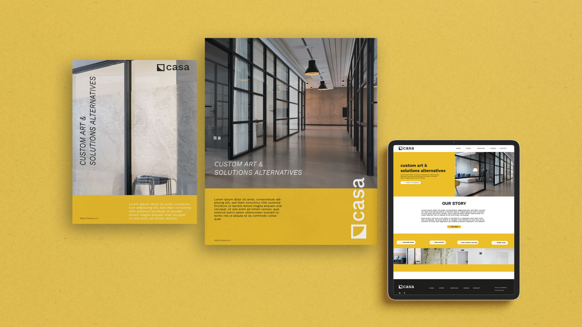 Casa è un marchio con sede a Belgrado (Serbia) specializzato nella progettazione, costruzione e installazione di barriere, porte, pareti e mobili per spazi pubblici e privati. I valori dell'azienda sono creatività, innovazione e qualità. Il mio contributo è stato proporre un restyling per dare un nuovo aspetto alla loro immagine coordinata.