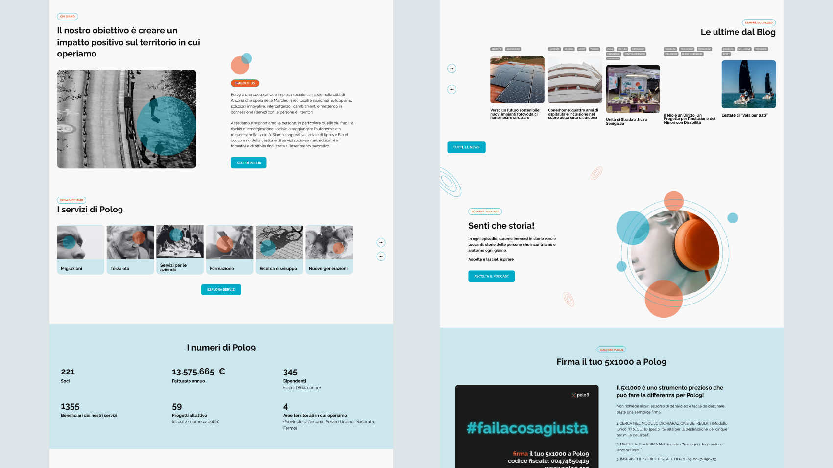 Polo9, una società cooperativa attiva nel settore sociale, aveva difficoltà a comunicare efficacemente online a causa di un sito poco performante, con una UX inadeguata e una UI obsoleta. Ho contribuito a migliorare questo aspetto sviluppando una UX ottimizzata, seguita da una UI moderna e accattivante.