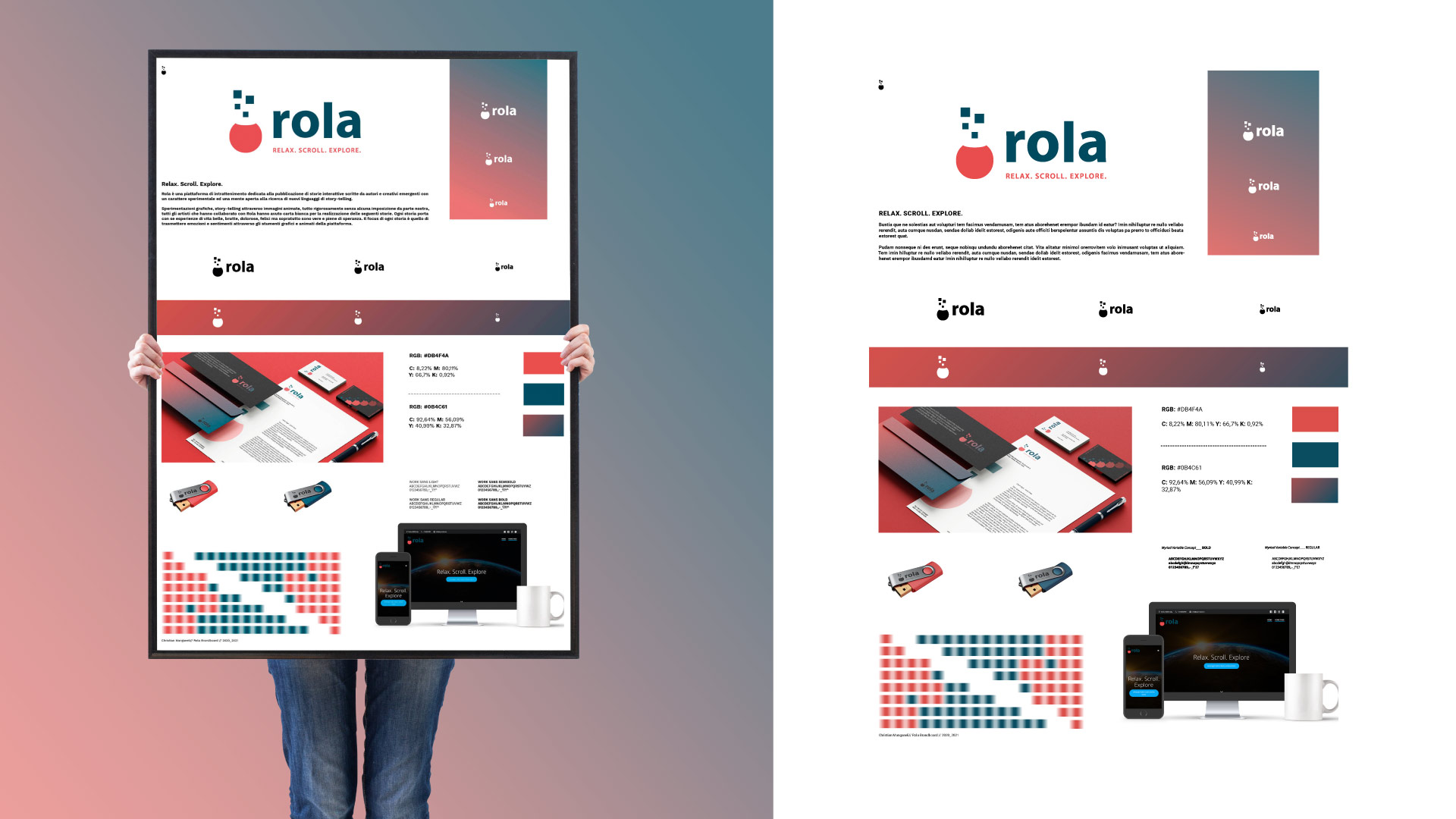 Quando si parla di Web, l'azione più comune effettuata dagli utenti per la fruizione di contenuti è lo scorrimento (SCROLL). Rola si propone come una piattaforma da utilizzare per godersi i momenti di pausa (RELAX) e lasciarsi trasportare dalle storie proposte (EXPLORE).